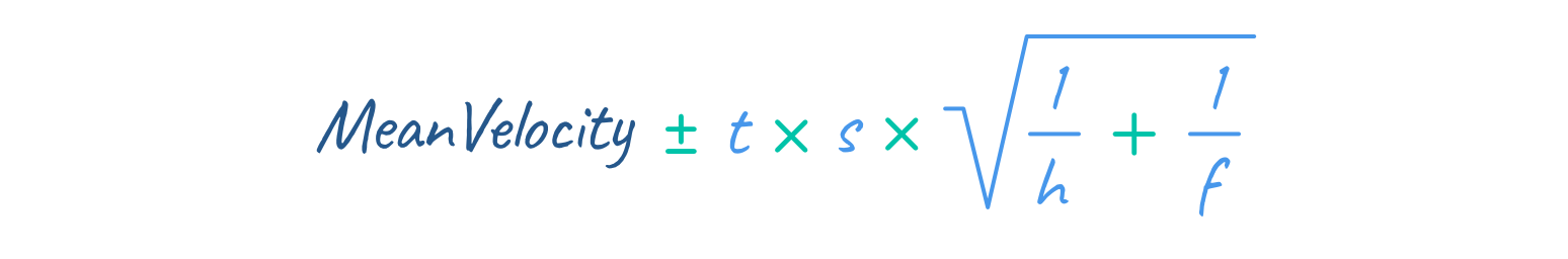 The Plan Visualizer forecasts a future velocity range using a statistical concept known as a prediction interval, which is given by this formula: